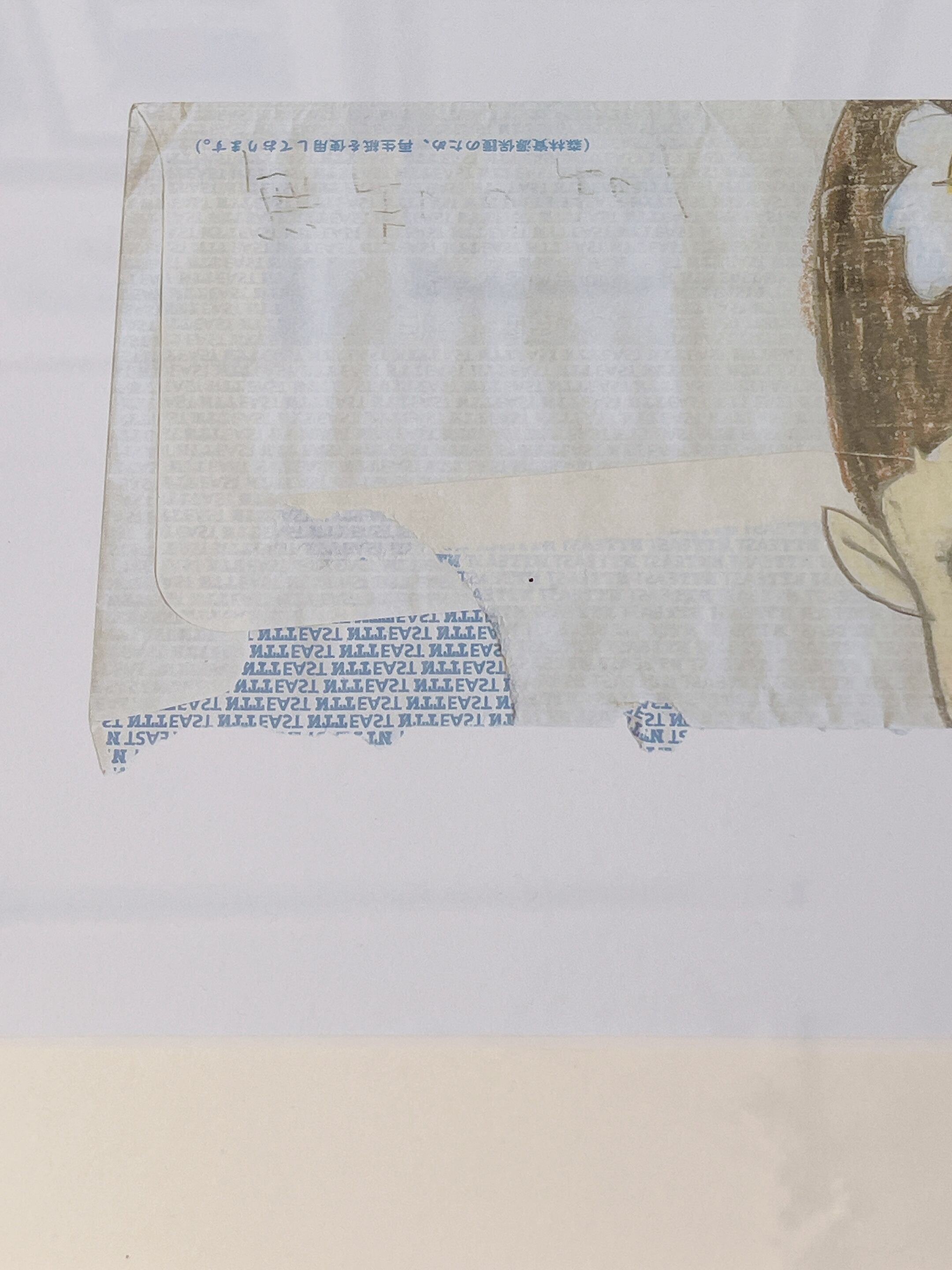 封筒のサイズ感もそのままに破れた雰囲気もリアルにわかる、おもしろい作品です。